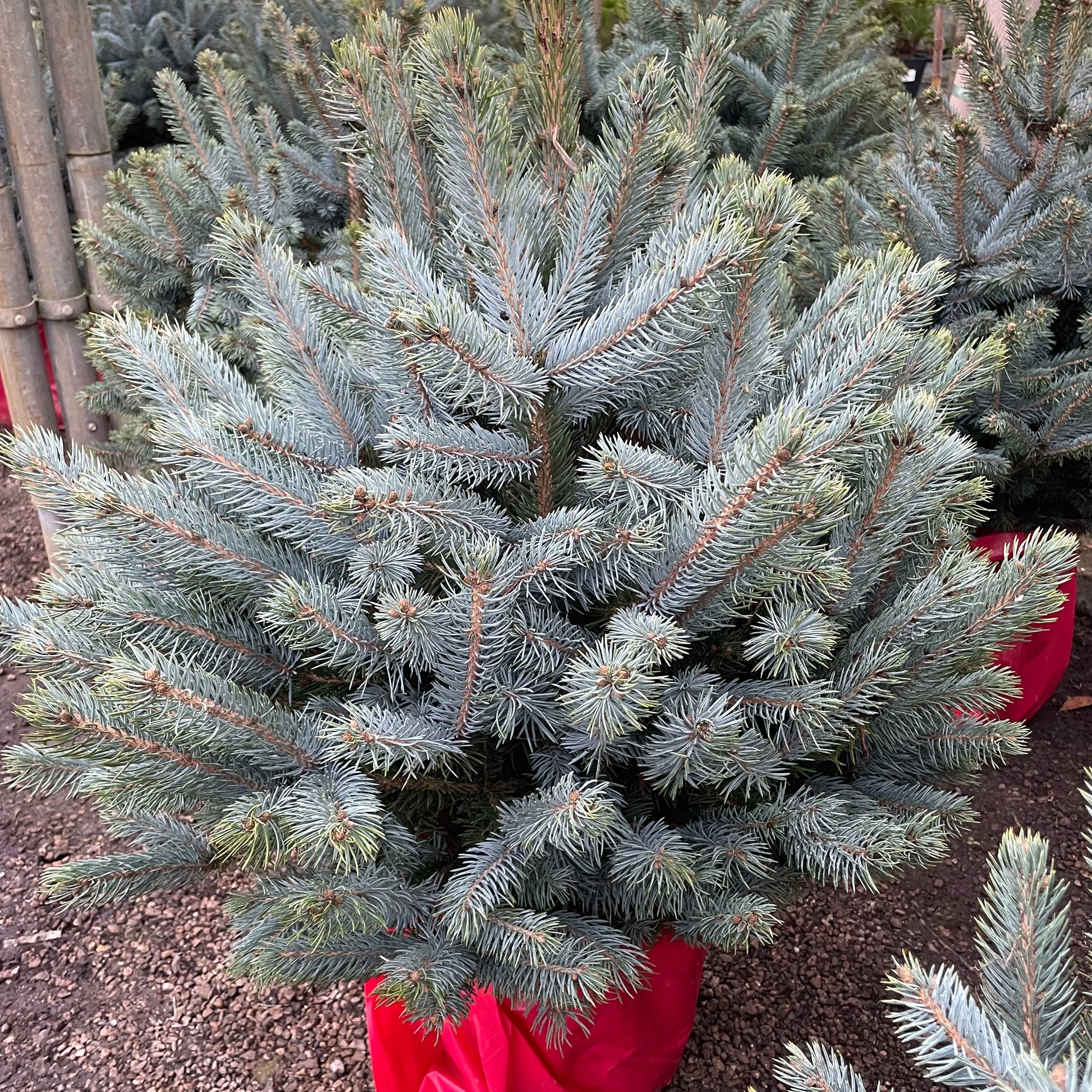 A really striking Christmas tree variety with gorgeous bushy, blue/grey foliage that has been pot grown (with roots) and is ready to decorate on arrival!